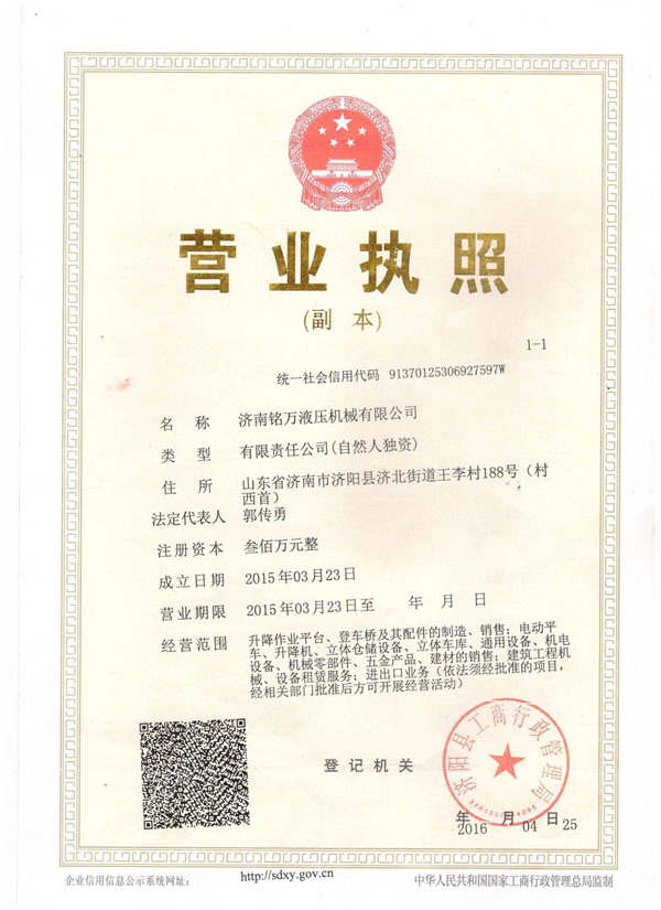 +濟(jì)南銘萬液壓機(jī)械有限公司【原濟(jì)南機(jī)械廠】,是全國制造液壓升降機(jī)、升降平臺(tái)的廠家,產(chǎn)品有八大系列六十多個(gè)品種,規(guī)格齊全、質(zhì)量穩(wěn)定、安全可靠、方便快捷;產(chǎn)品銷往全國各地,深受用戶好評(píng)。升降機(jī)廠家技術(shù)力量雄厚,產(chǎn)品設(shè)計(jì)先進(jìn)、工藝成熟、實(shí)驗(yàn)檢測(cè)手段完善,“質(zhì)量第一,用戶至上”是我們的宗旨。 本公司采用先進(jìn)的管理手段,嚴(yán)密的質(zhì)量監(jiān)控體系和良好的售后服務(wù)隊(duì)伍為我們的產(chǎn)品走向市場創(chuàng)造......